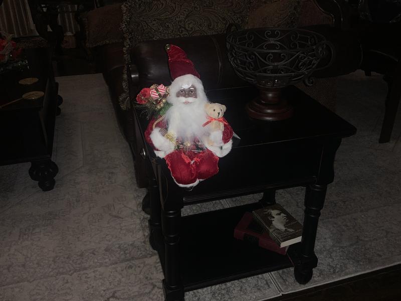 I love that they are coming out with more cute Santa’s that aren’t white. He looks so cute in my hearth.