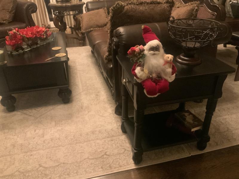 The Sitting Santa fit just right on the coffee table and outstanding view. Size was perfect and not once did it slide from the table; it's very sturdy and beautiful. You can't help but to notice the statue once you see it. I definetely recommend!