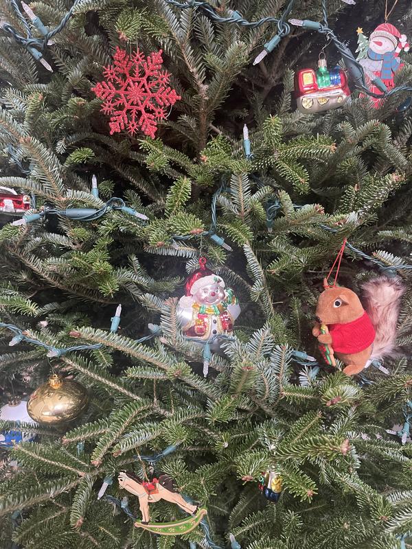 Mine was received broken also. It is very cute but squirrel was supposed to be holding Christmas tree. Unfortunately it was laying on bottom of clear bag.