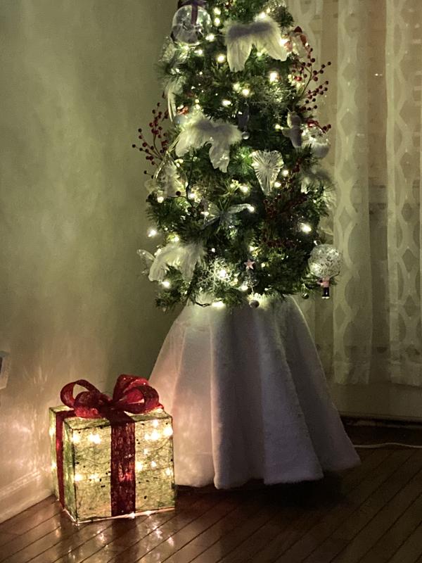 The prettiest and softess tree skirt. Well made. And, of course, it wraps around my white tree.