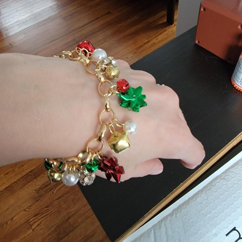 I love this little holiday bracelet. It's like a charm bracelet for the holidays with its sparkling appearance and nice jingle when you move your hand or arm.