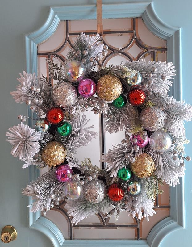 Beautiful silver wreath with colored balbs
