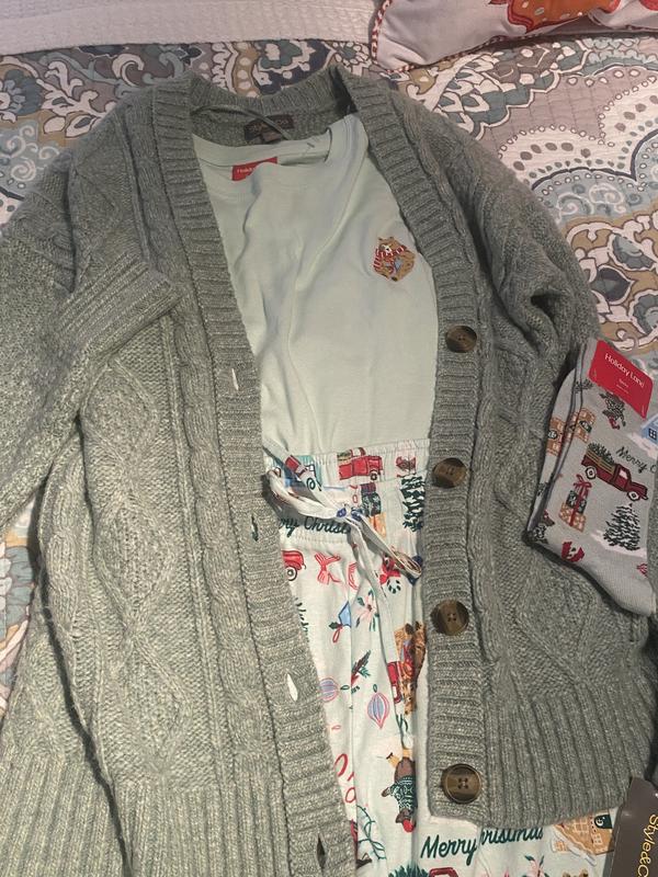 I got this pattern for myself in a small! It fits perfectly on and the material is a very soft thick, great quality fabric! Cute bear on the top and I love the colors and designs in the pj pants! I also, purchased a pair of socks that match this pj pattern perfectly! That wasn’t the only thing I decided to get a sweater that is quite similar in color to go along with my new pajamas! Me and my husband have a matching set! 🥰🩵💚 Holiday Lane you did it a gain! Very pleased with my purchases! Thank you Macy’s!