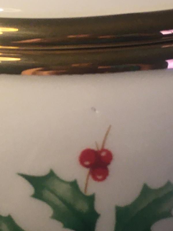 This pristine porcelain cookie jar is shaped like a precious Christmas ball ornament with 24k gold accents for a charming finish.