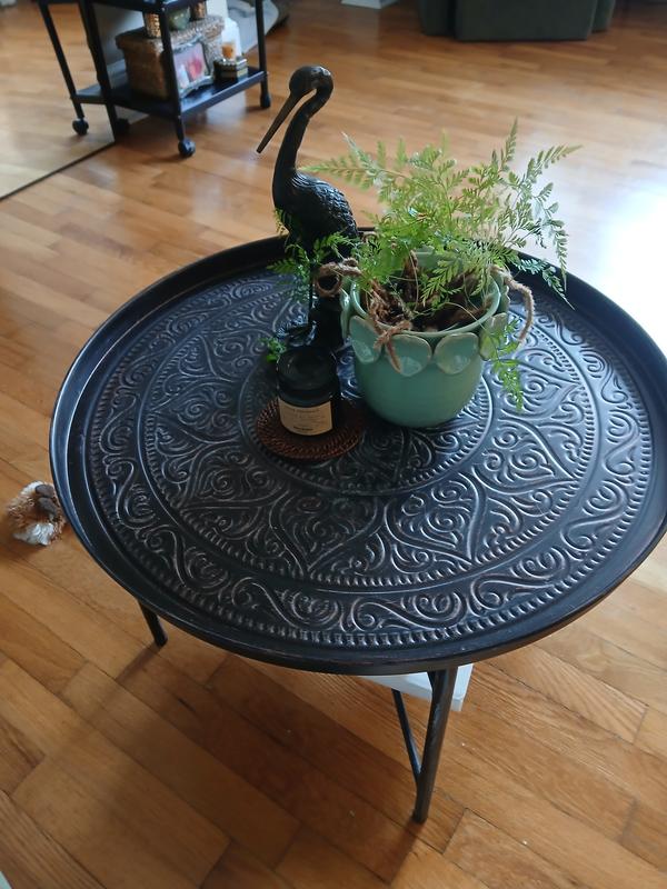 I ordered the pewter color expecting a gray tone, but it looks more brown in person—definitely not what I expected based on the photos. Assembly was super easy, which I appreciated. The design is a bit unusual though: the top is more like a tray that just rests on the legs, so you can’t pick the table up without the base falling apart. It’s not a dealbreaker for me, but something to be aware of. Overall, it’s a nice piece—just wish the color was more accurate and the tray top was more secure.