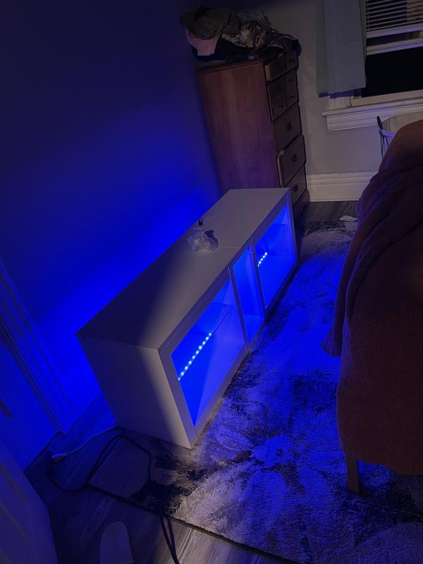 LED Ambiance: Features USB-powered RGB LED lights with 16 colors and four dynamic modes, enhancing your viewing experience. Holds up to 55 inches of TV on this media console