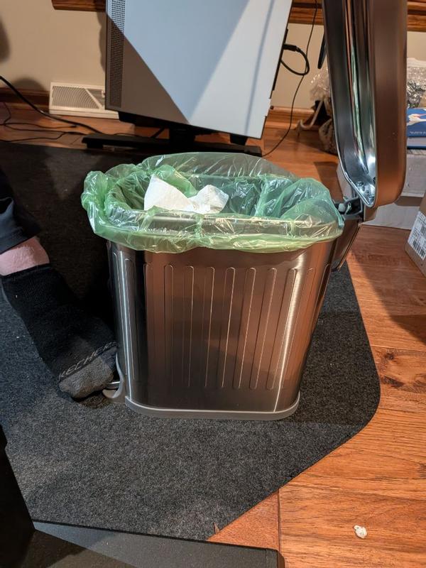 I have to say, this trash can exceeded my expectations. First off, the design is very sleek and modern. It looks great in my bathroom and doesn’t feel cheap or bulky at all. The size is perfect. It holds a good amount without taking up too much space, which is exactly what you want in a bathroom trash can. What really sold me is how quiet it is. The lid opens and closes smoothly with absolutely no noise, which is a small detail but makes a big difference. The pedal works perfectly and feels sturdy, not flimsy like some others I’ve tried. Overall, it’s a simple but well designed product that does exactly what it should. Clean look, quiet operation, and practical features. I’d definitely recommend it.