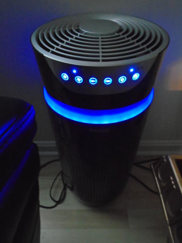 We are so enjoying our air purifier. It's doing a nice job cleaning our indoor air. Love the design and operation of the product. So simple to use! The blue night light adds an amazing touch to a great product. For us, a bonus is the quiet whir of the motor which makes a soothing "white noise".