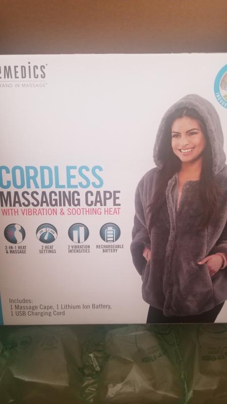 Not a massaging cape! Merely two small vibrators on the shoulders and a small heating area between the shoulder blades.