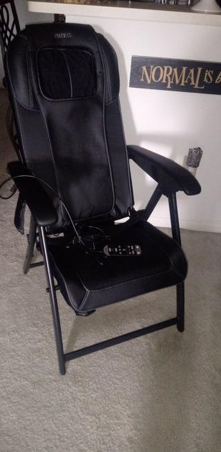 Bought this to replace my massaging chair pad which was getting cranky. This chair takes some getting used to, much stronger massage action & different pattern than the pad but it will be fine. Like the separate neck massager which can be adjusted up or down. I do like that it is its own chair so I don't have to use a dining chair anymore for the pad. Wish the spot setting was more specific & continuous.