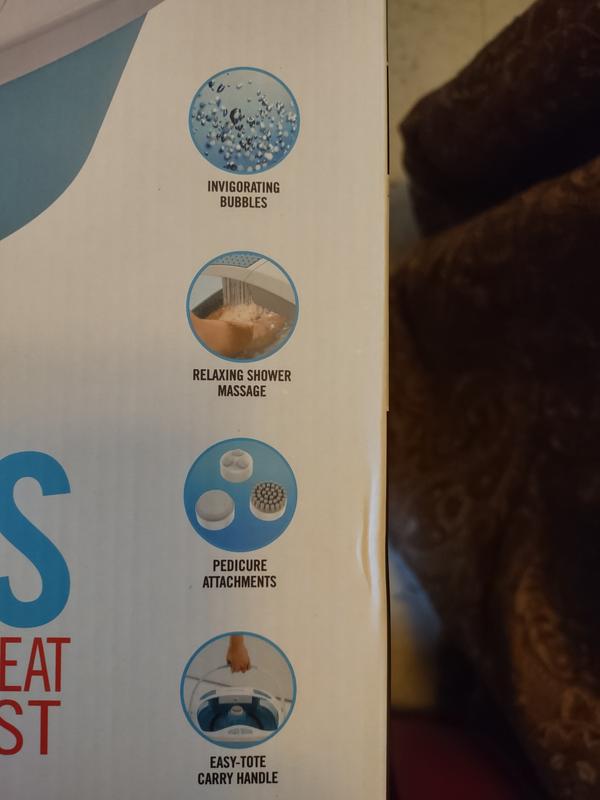 I purchased the foot spa based on the photos and advertisement. After I ordered and received the unit, I found it to be too small for my feet, the attachments were not as advertised, and the bubble footbath was very weak. The only function that met the ads was the water heating feature. I sent my foot spa back the next day.