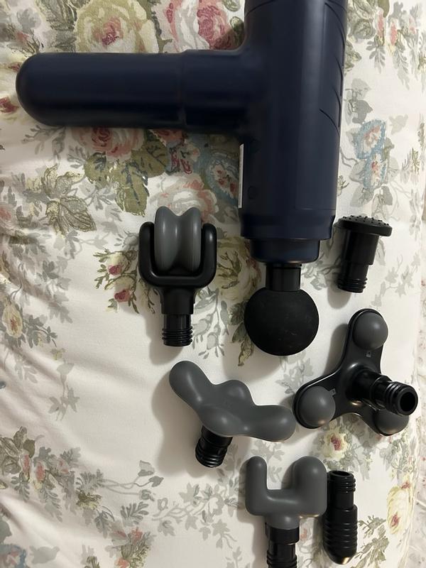 I love all the different attachments this massager comes with. It’s very easy to use, not too big or too small in my hands, and the battery life lasts a good amount of time. The only thing I don't like about this massager is that when you add any slight pressure while using it the vibration does like a little burst and it can be a little annoying at times