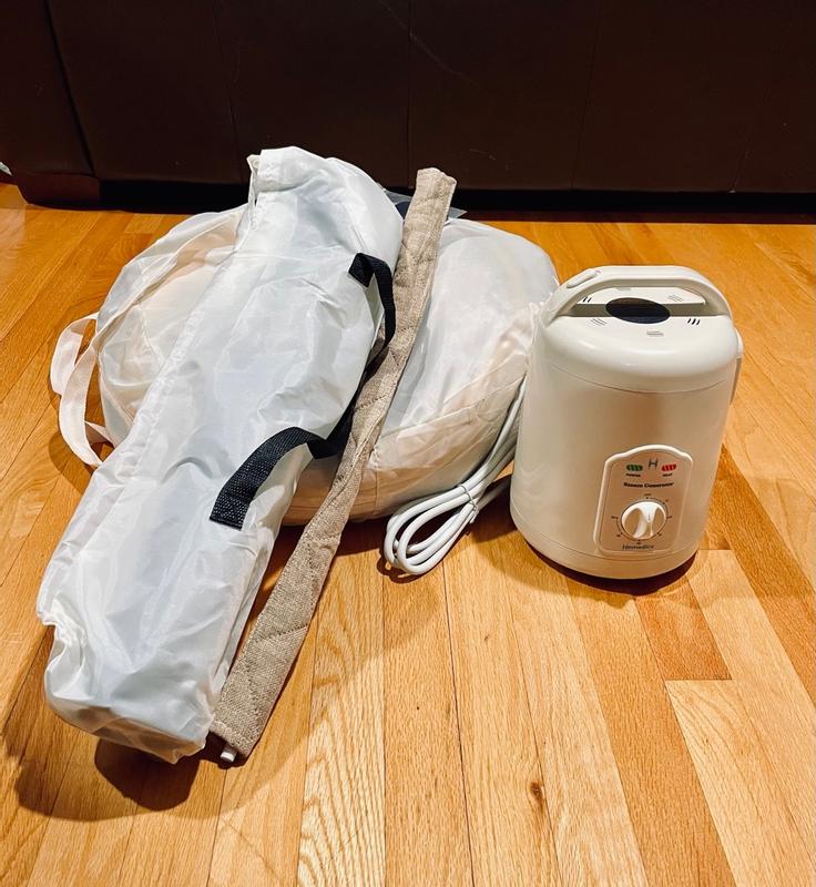 A sauna at home.... yes please! I have to say that i really enjoy using the sauna. This heats up the water fairly quickly, pumps out a perfect amount of steam, without blinding you, as you can still see around you. The setting up was easy to do, and the best part is it's collapsible, and easy to store. I put a comfy bean bag inside, and steamed away those pesky sinuses. I also love how my skin feels after using this!