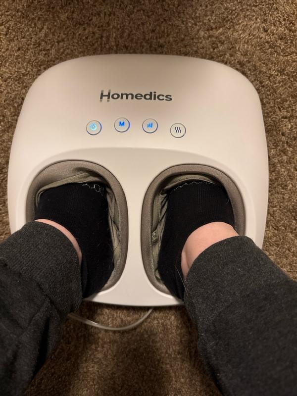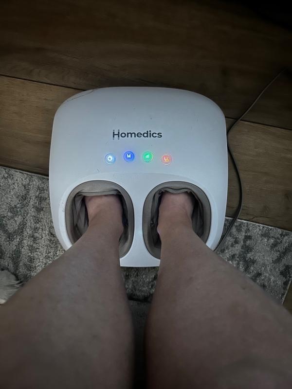 I am happy with my Homedics foot massager! The device is lightweight and easy to move around, and trust me, everyone in the house wants to use it, so it gets around! The massager is easy to use, just insert your feet into the comfy sleeves, turn on the power and get ready for a satisfying foot massage. You can control the massage sequence, air sleeve tightness and add heat if desired for a custom experience. The massage feels great especially after exercising, long drives or walks. I am very happy with this foot massager and would recommend to anyone with tired achy feet. Thank you to Homedics and Influenster for providing this device free in exchange for my honest review.