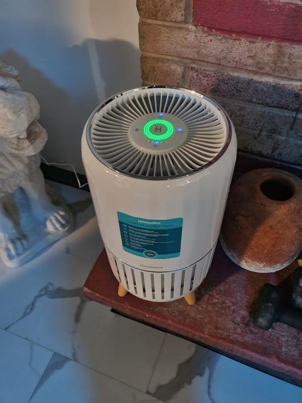 This is a great air purifier. It’s beautiful and fits perfectly into my living room space. I can tell a difference in the air when I use it. The air feels cleaner and I have less allergies and sneezing. Overall I recommend this.