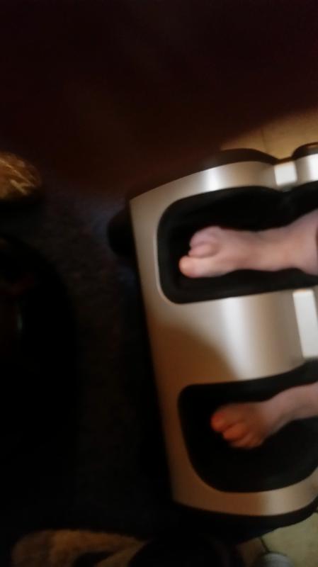 I did not like this. It squeezed my feet from side to side not from top to bottom… it was awkward, uncomfortable and it hurt. I enjoyed the calf massage but you can not turn off the foot massage part. Returned