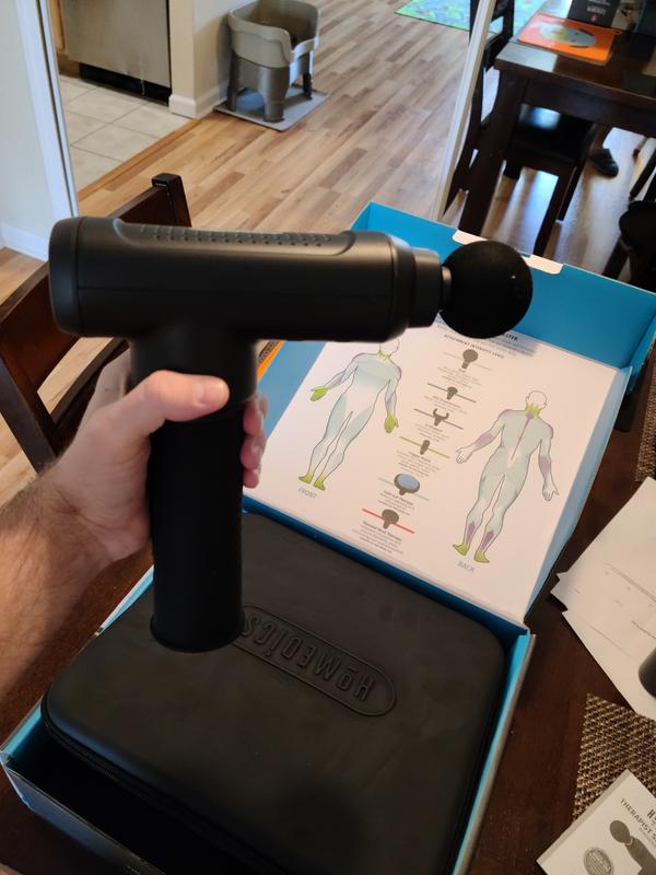 I've been benefiting from using the HoMedics Percussion Massager to relieve any aches and pains. Included are six attachments to tackle varying muscles and issues. The six intensity levels are utilized via the touch screen on the device. The massagers functions are straightforward to put to use. A handy carrying case stores each item with each other for home or travel use.