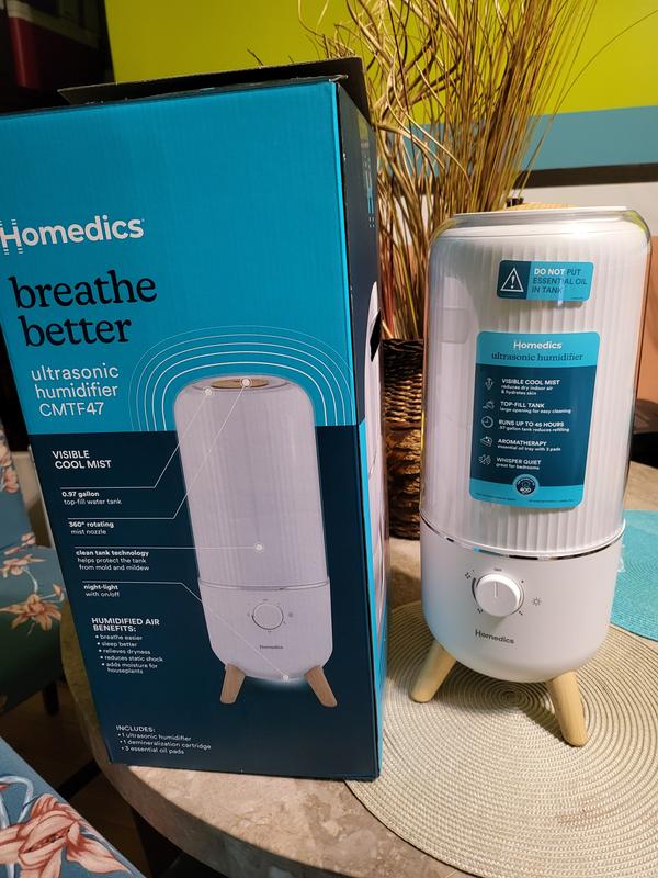 I love the look of this humidifier. In its own way it’s sexy. This humidifier is easy to use, the top comes off and you pour the water in. No daily moving around like with the tank humidifiers, which wear down. My only small change would be to make the mist come out stronger at highest setting, but I like a high humidity to begin with. Don’t get me wrong this device is great for medium sized room. One tiny co