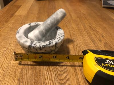 I was expecting a bowl a little larger then when I open the box and saw how small it was I had an opportunity to wash it up and try it I was absolutely impressed how easy it was to grind and not leave any residue behind the ball holds a lot more than Expected in the marble pattern is just beautiful