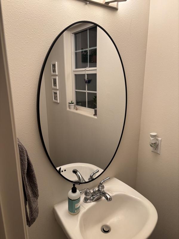 HOMLUX Oval Bathroom Mirror: Durable, scratch-resistant design. Oval shape for spatial efficiency. Available in two sizes and frame colors. Easy installation with minimalist design. Backed by 20 years of expertise, safe packaging.