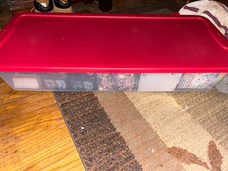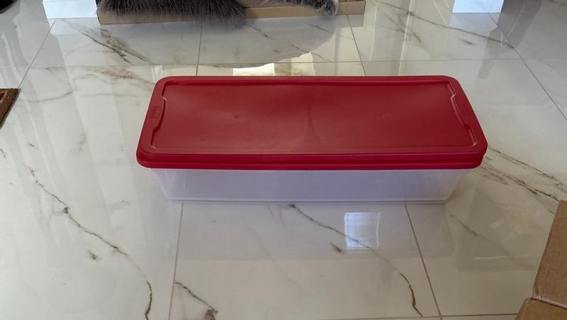 41Qt Clear Plastic Holiday Storage Container with Red Snap Lock Lid, 2 Pk