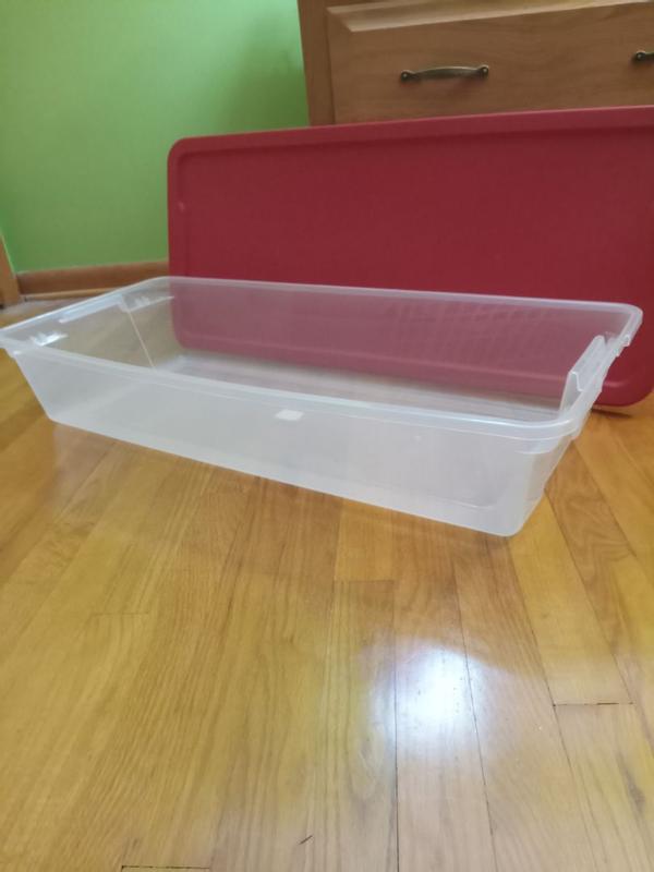 These containers are incredibly sturdy. I like that they are transparent so you can see the contents, and the depth allows them to be stored under the bed for fabric or paper items that can get ruined in my garage during the heat and humidity of summer. They close securely and are long enough to hold those super tubes of wrapping paper!