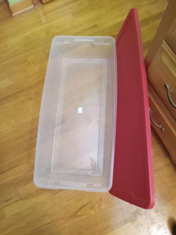 The storage container worked great. I like that the lid closes shut tight without killing your fingers. This has happened with other totes I’ve had. The size is great for fitting longer items but width also is nice so really gives you a lot of options for storage. Plastic seems moderately durable. All around great tote!