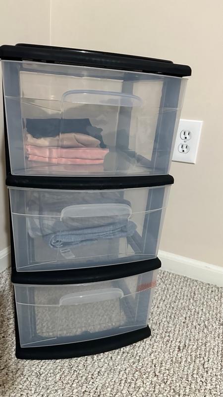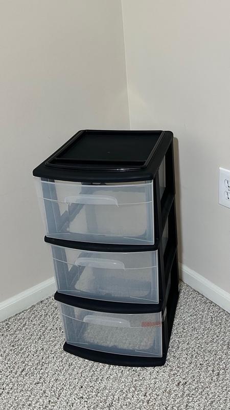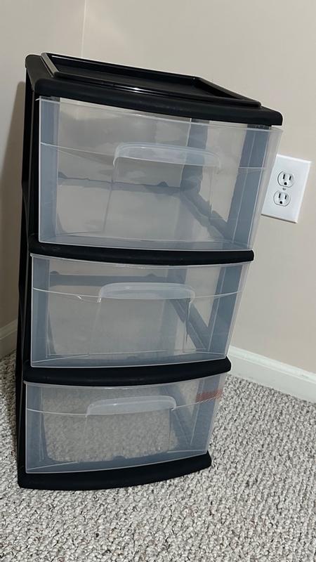 Plastic 3 Drawer Medium Home Storage Container, Clear Drawers & Black Frame