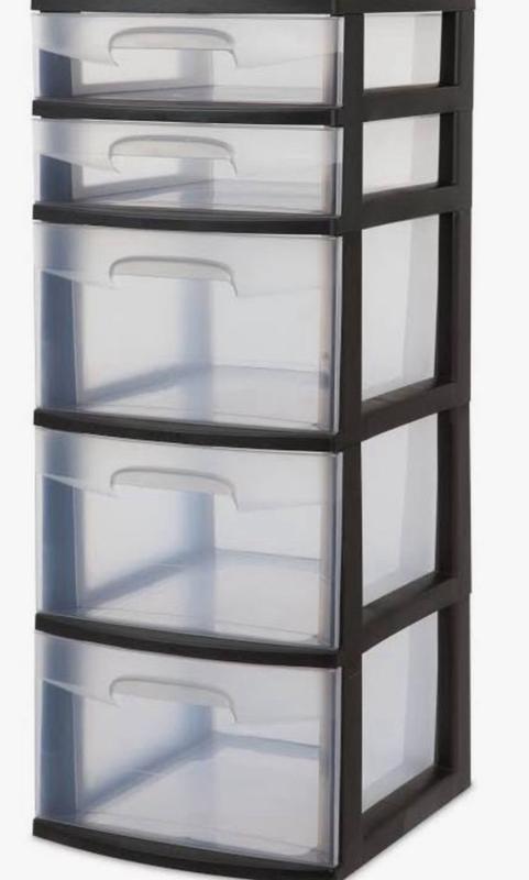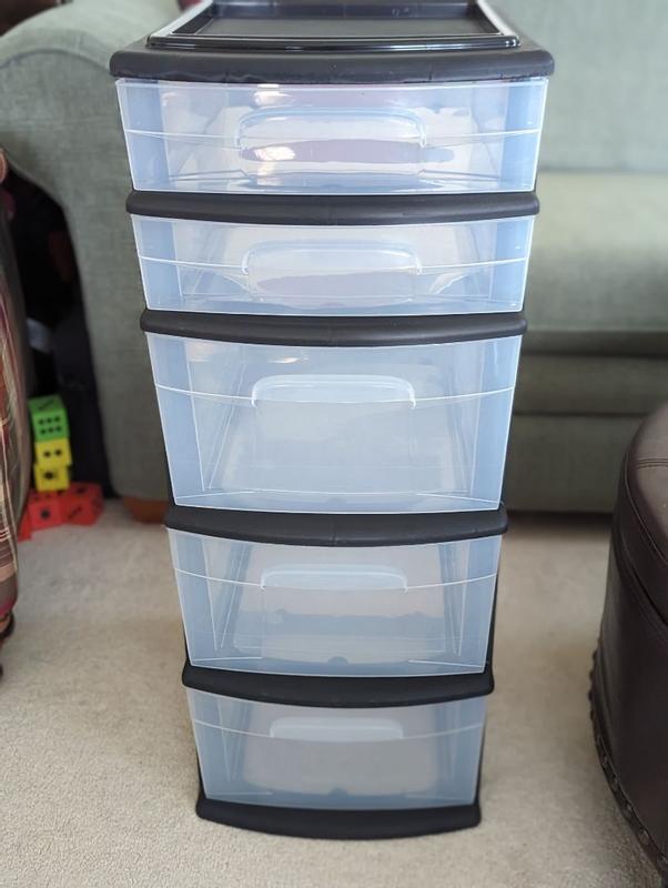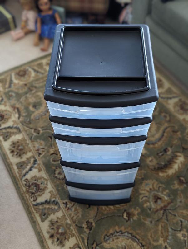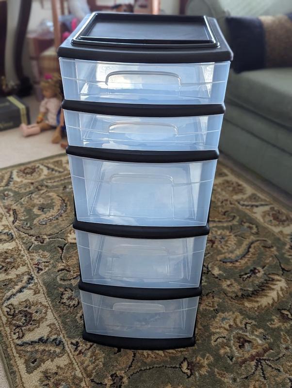 Plastic 5 Drawer Home Storage Container TowerCloset Organizer, Black Frame