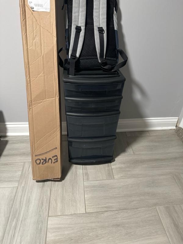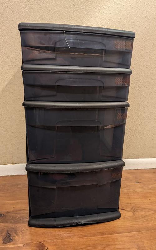 I was gifted this storage drawers for review and unfortunately I'm disappointed. The caster with wheels wasn't in the box. So it's not portable at all. It sits too low on the floor without them and I don't have a counter or table I can put it on. It does hold a fair amount of stuff, but if you're not careful it will tip over when you pull a drawer out.
