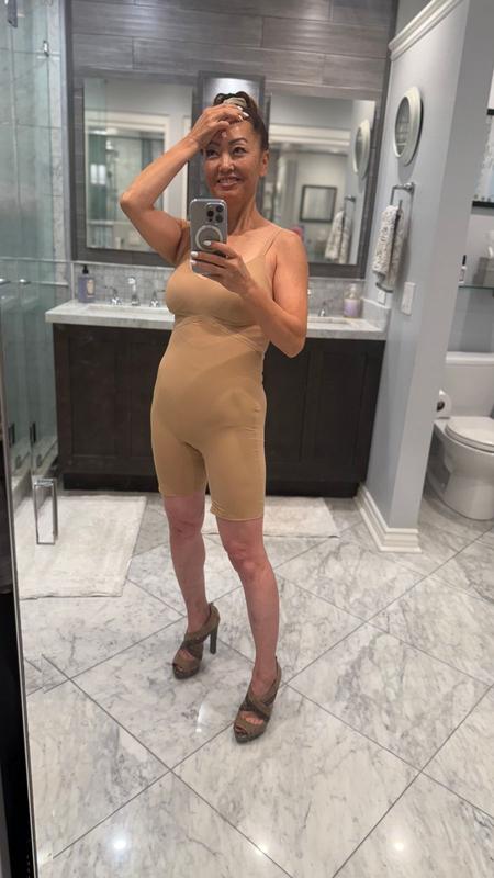 Wow! Absolutely love the bodysuit shapewear. Easy to get on and off, the gusset makes using the bathroom super easy and I love that I have no lumps and bumps in my cute dresses! 20/10 recommend!