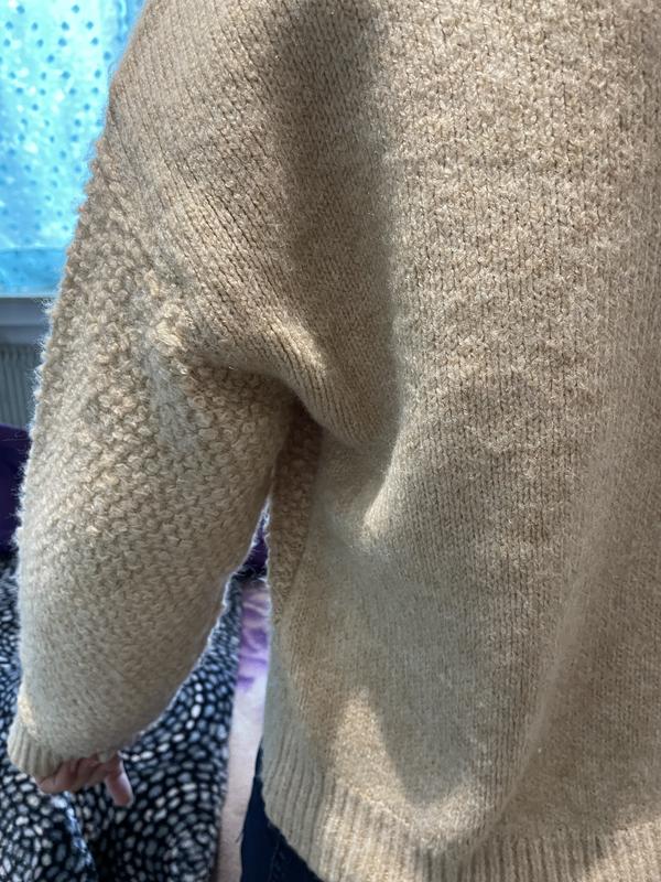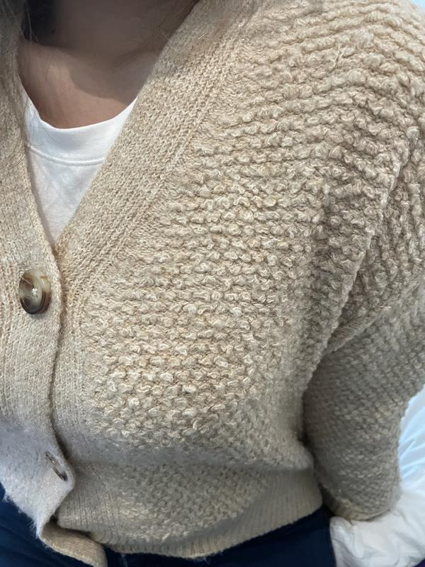 This sweater is cute, it has nice texture on the front and the buttons are nice. It fits as expected. I am marking it down because the color in the image does not match the actual color. I purchased what I thought would be a light beige, cream color. What it is, is a brown camel color. I am keeping as I will wear it but it doesn't go with the other items that I bought it to go with! I took pictures to show color but the picture really isn't depicting it as dark as it is.