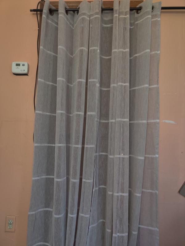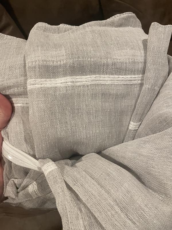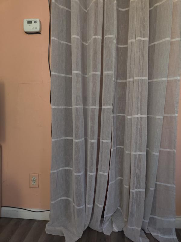 These curtain panels are very pretty. Thin, light, airy material that lightens up a room. The beautiful soft grey color with the horizontal white stripe matched my modern farmhouse bedroom perfectly. These were lightweight and didn’t put weight on my rods. I love the way the light filters through the drape. Perfect for any room.
