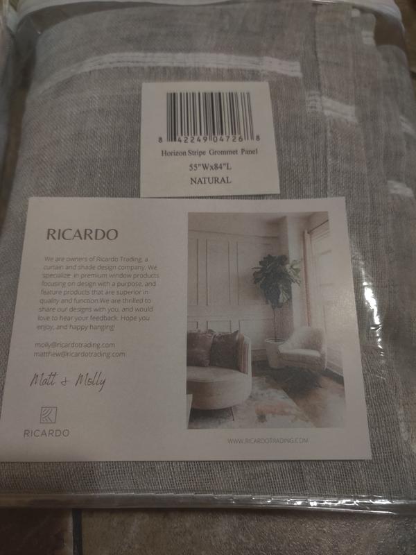 I have a few weeks that I put these curtains on Ricardo Horizon stripe Rod Pocket W/Back Tabs Panel 55x84 Natural I love these semi-sheer curtains But what I like the most is that they let a lot of light into my room. These curtains are quite beautiful, very light, they are not heavy and above all they are very long, the design and color combine with any decoration in the room. homemade and easy to put on and take off I highly recommend them.