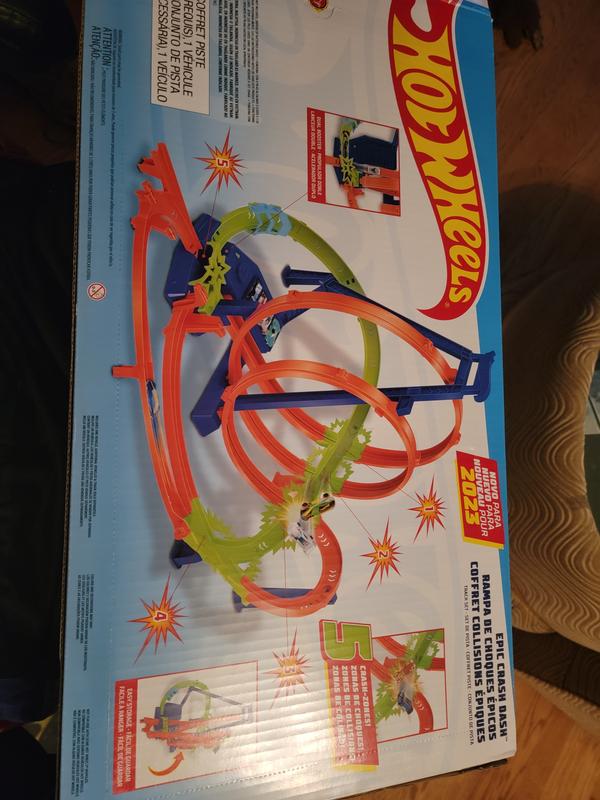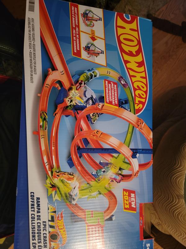 My son received this for Christmas and has disappointed ever since, the track will not even run the car it came with let alone more that one hot wheels car to actually see some crash action.