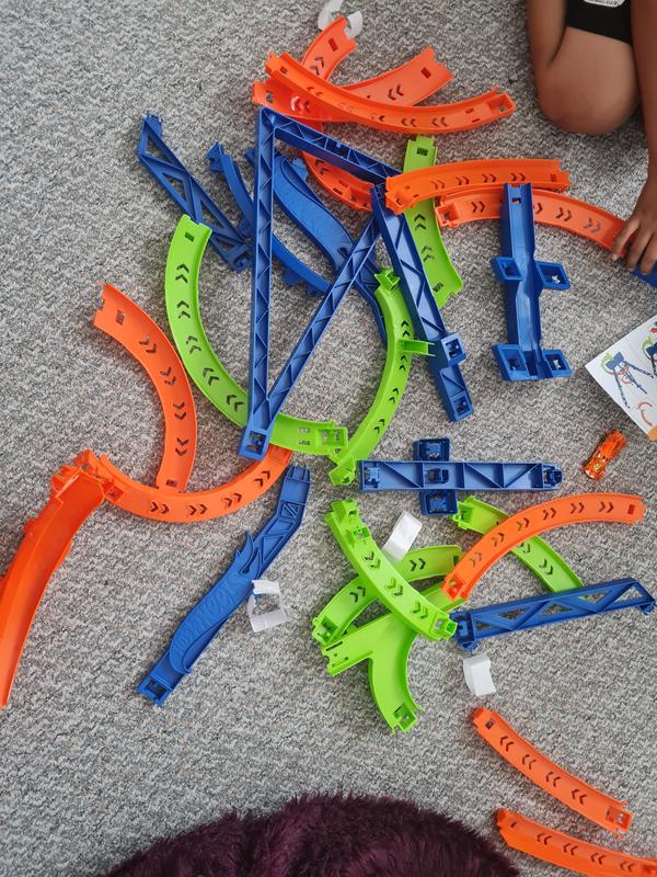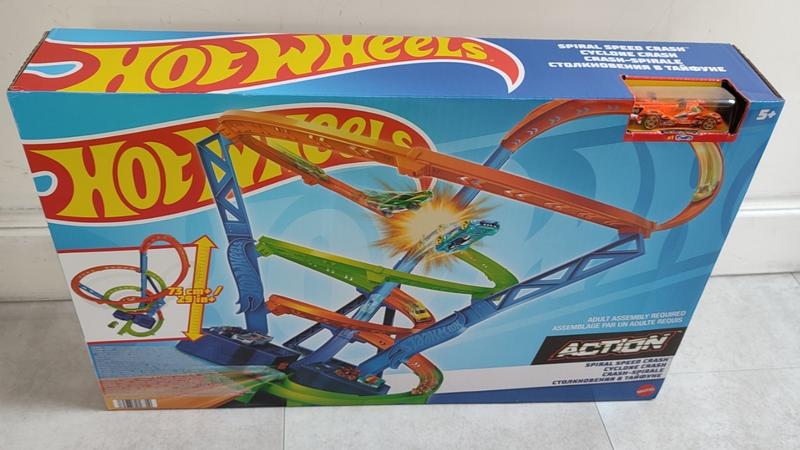 My son was so excited for this and once assembled the cars don't stay on track at all I even put new batteries thinking there wasn't enough force and still the same pretty disappointed from big hotwheels fans.