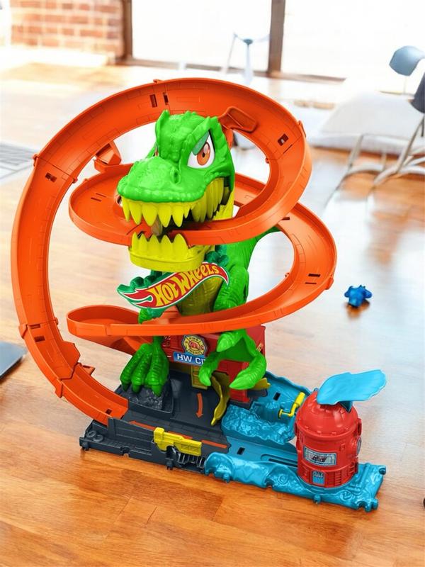 My 4 year old son is over the moon with this toy. Easy to assemble, just have to follow instructions which shows step by step (this is probably the first thing I did it myself ha, I’m usually terrible with following instructions). It comes with 1 car but we already have a collection of Hot Wheels cars so will be able to use them all. It’s safe to use and moving dinosaur makes it fun for the little one.