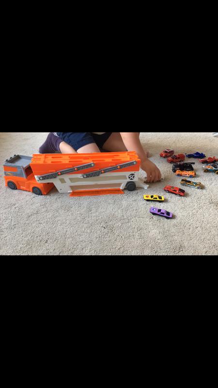 My 4 and 7 year old sons were super excited to receive the Hot Wheels Mega Hauler! They love pretend play and quickly filled up the hauler with their hot wheel cars. It does seem to be made a bit flimsy, but my boys were very happy with all of the different compartments. They have gotten many of hours of play out of this toy. I highly recommend it!
