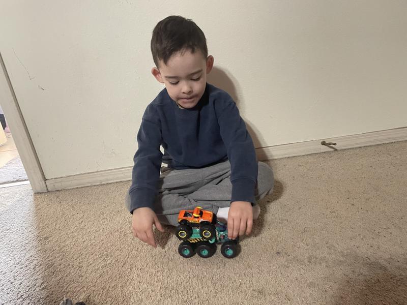 My truck loving son went crazy over this toy. He lines it up with his other monster trucks and it dwarfs them. He thinks it's fun to stomp on all his vehicles with this truck. I can already see I will need to collect them all for him.