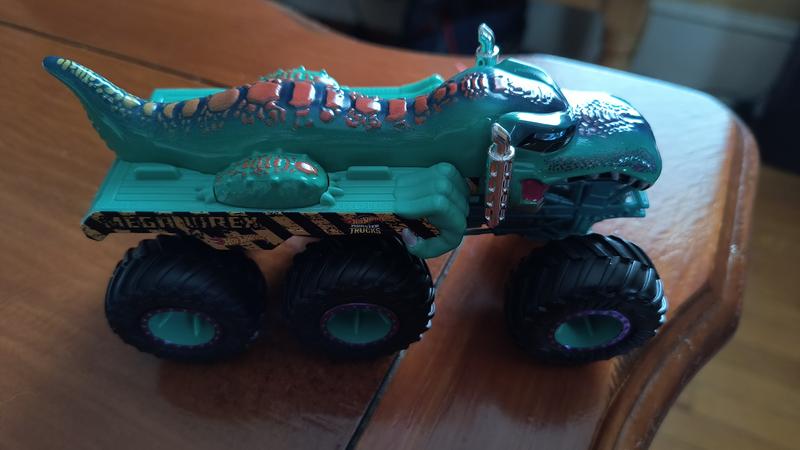 Hot Wheels Monster Trucks Big Rig Mega Rex is a fun toy that my 8 year old loves. It seems very durable as he has played hard with it inside and outside driving it through dirt and off jumps. The details on it are incredible and my son said it looks just like the real one.