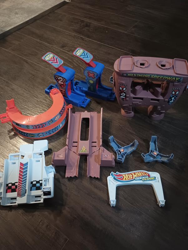 RacerVerse Spider-Man's Web-Slinging Speedway Track Set with 2 Hot Wheels Racers
