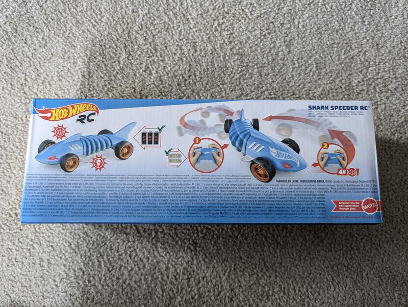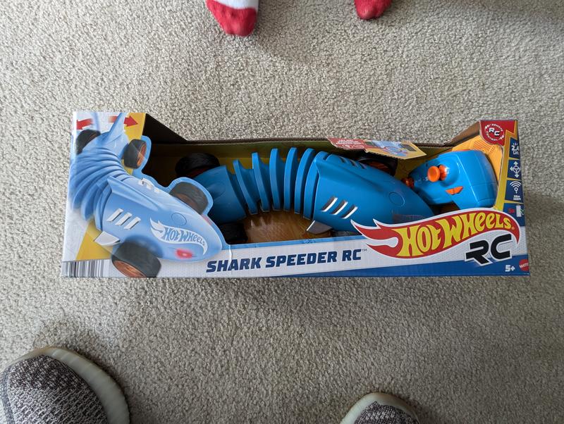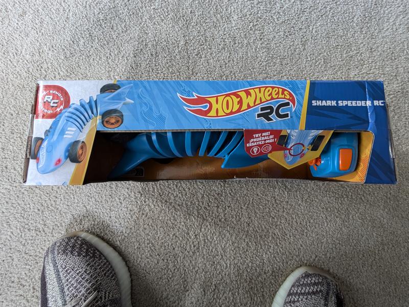 This Hot Wheels Shark Speeder R C “car” is actually pretty cool! I like that you can press the top of the shark or the top of the remote to make different sounds. One of the sounds sound like it’s taking a bite out of something, the kids love it! The way it goes and wiggles is fun! It is made very well. The kids can drive it fairly easy. I think this is a good toy for multiple different ages. It would be a great birthday gift or gift in general.