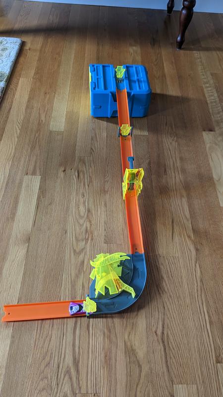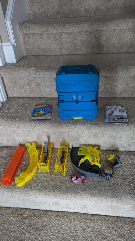 My almost 7 year old son absolutely loves hot wheels and this track set was a huge winner! Usually dad or I have to help with setting things up however this wasn't the case this time! Before i knew it (quite literally, he snuck it out when he first woke up before i even knew he was up!) He had built a track and was playing!!! He has high functioning ADHD and is on the autism spectrum so when i say this is amazing i truly mean it!!!! The different track set ups given in the directions are challenging enough to keep his attention yet not so complicated that he gets frustrated enough to not use it, amazing! He is also able to set it up in his own way and use the case as a garage while playing. There are other sets that you can buy that go along with this one and my son is already begging me to get another, it looks like to can stack the cases together which could be lots of fun! As a parent I love how easily all of the pieces fit back into the case when it's not being played with. You can see how easily one of the largest pieces fits in the picture i took. This is great if your like me and like to rotate different toys so that the kiddos don't get bored!!! I would absolutely recommend this for anyone with kids into hot wheels, it would also make for a super fun and easy to wrap gift!
