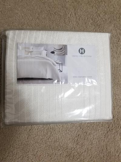 This duvet cover is a beautiful piece of bedding. Honestly, I'm finding it hard to put on my bed, because I feel like it's going to be ruined by everyday wear and tear! If the guest bed in our house was a king size, it would be perfect for that room. The stitching all looks of good quality. The design in the fabric is barely noticeable, but gives it just the right amount of texture to make it more interesting to look at. My kids will not be crawling all over my bed while we are using this beautiful duvet cover! It is a beautiful addition to our master bedroom.