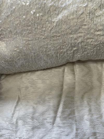 Gorgeous and well made for the most part. Lovely texture, light champagne gold color and perfect weight. It’s a metallic taupe if that makes sense, not overly feminine although the sequin decorative pillow is. The comforter actually covers the sides of a king mattress which can be tricky! Unfortunately, the comforter seams are inconsistent which is upsetting for the price point hence four out of five stars.