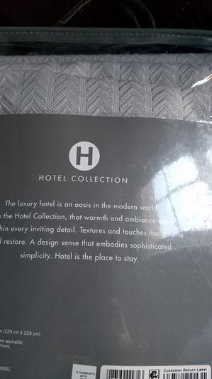 Must say as long time customer, I am really disappointed in the poor quality of this King size blanket from your Hotel collection! What happened to the quality we have come to expect from this brand ? My blanket is like a cheap scratchy piece of drapery. I will buy Charter Club before I ever spend my hard earned money on Hotel Collection again !