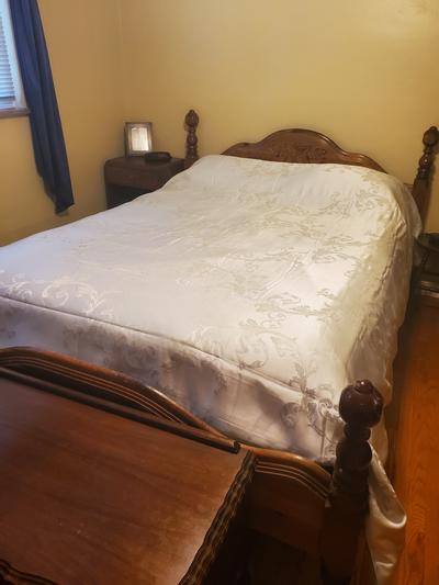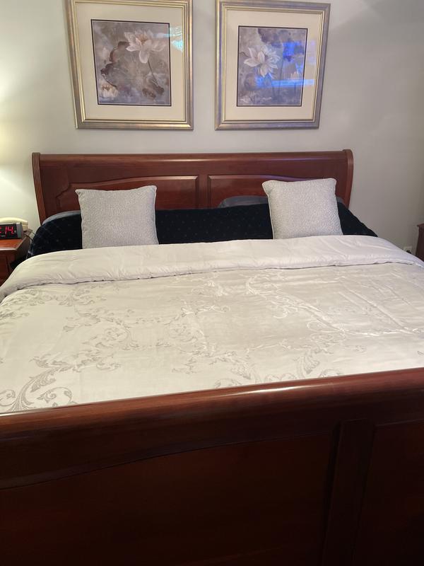 This comforter is so beautiful against our cherrywood bedroom set. Stunning.