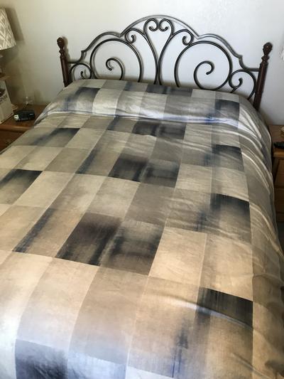 Pleased with overall quality and fit of this duvet. The colors are vibrant and the geometric design adds flair to the room. The fabric is lite weight and perfect for our California King bed.