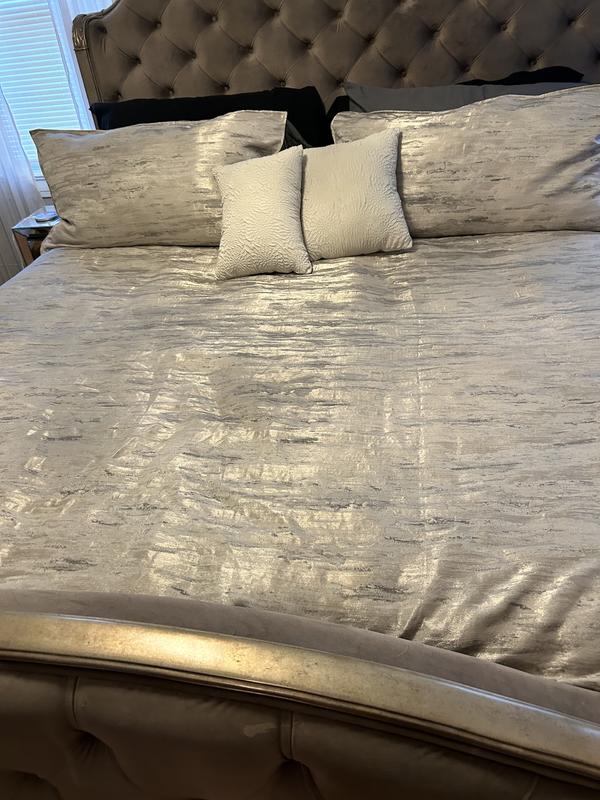 Beautiful set came shrink wrapped and no way to get the massive wrinkles out. Tried everything and looks awful. So disappointed. Tried to save on shipping but really ruined this comforter. Got expensive sets from Macy’s before and never like this mess. Going back!