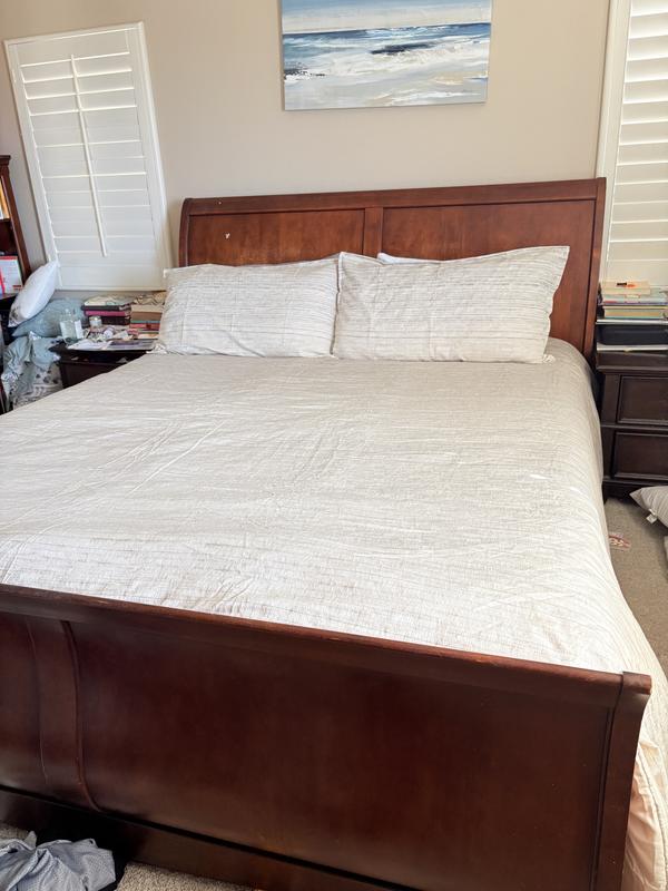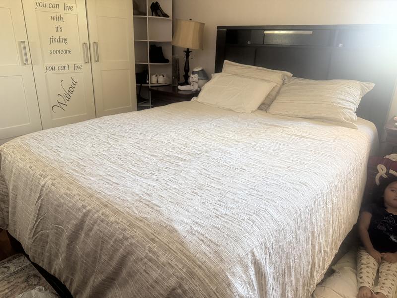 I’m thoroughly impressed with this 3-piece king bedding set. The first thing I noticed was the generous coverage—the comforter fully drapes over my king-size bed, giving it a clean, beautifully finished look with no gaps. The fabric truly stands out. It has that smooth, luxurious feel you’d expect from a 5-star hotel, adding an elegant touch to the room the moment you lay it out. Even though it’s not 100% cotton, the material feels high-quality and durable. What I love most is the weight and warmth. The comforter has a substantial, cozy heaviness that has been perfect for these cold winter nights. It keeps me warm without feeling overly bulky, and it’s quickly become my favorite bedding for comfort and relaxation. The pillowcases are also generously sized, fitting my larger pillows with ease—something I always appreciate. My only wish is that the set included matching bedsheets to pull the entire look together. Overall, this comforter set exceeded my expectations. It combines elegance, warmth, and excellent proportions. I would absolutely purchase it again and highly recommend it to anyone looking to elevate their bedroom comfort and style.